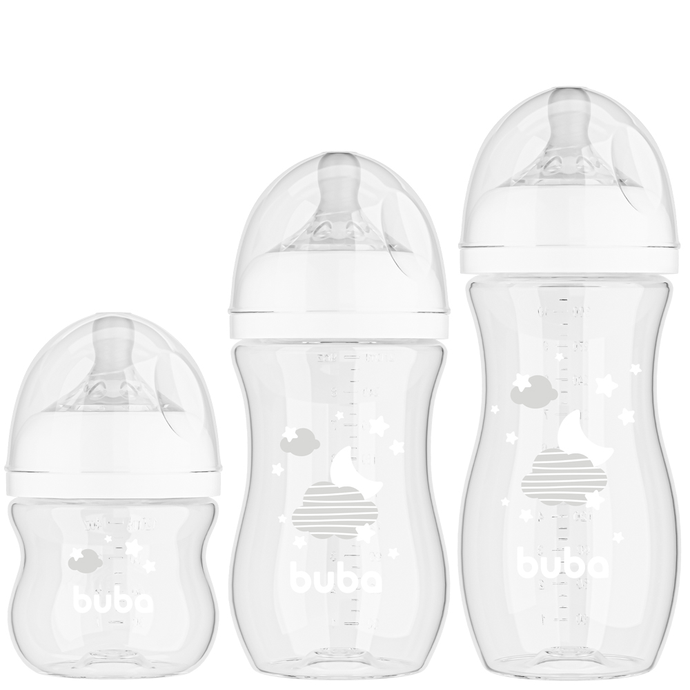 Kit 3 Mamadeiras Easy Flow Nuvem Branca, 120ml/270ml/330ml, Anticolica - Buba