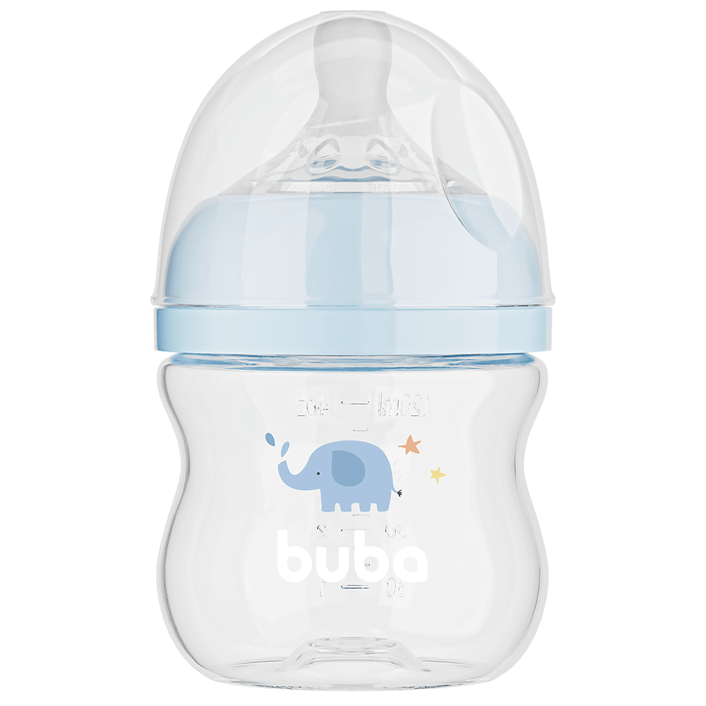 Mamadeira Easy Flow Elefante Azul, 120ml, Anticolica - Buba